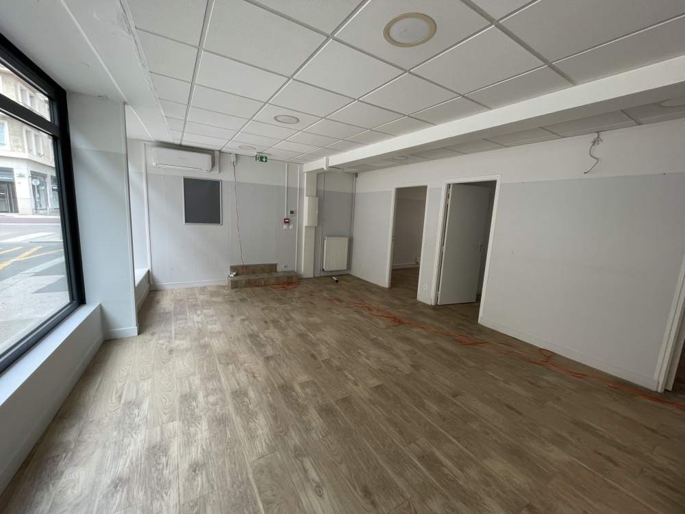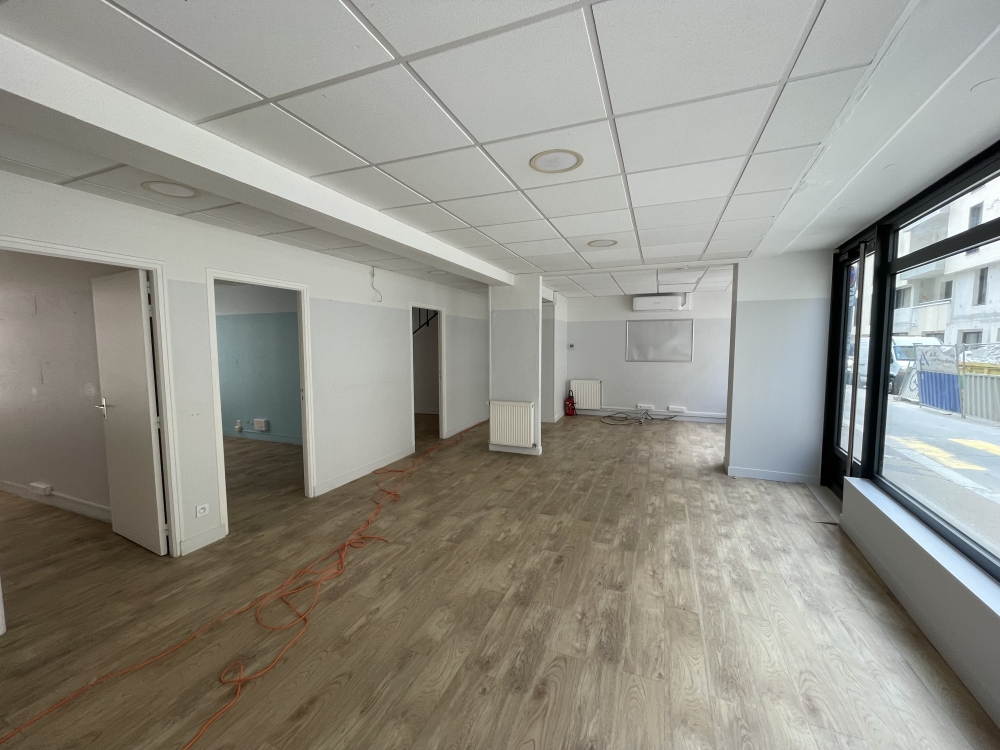 Au rez de chaussée, une grande pièce principale pouvant être facilement recloisonnée, deux bureaux dans le fond donnant sur cour. A l'étage, une grande pièce et deux bureaux.